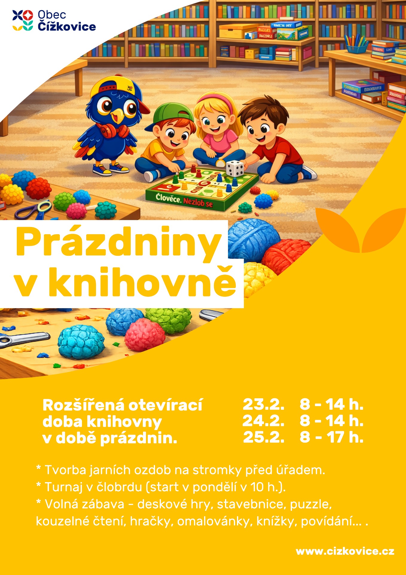 Rok se s rokem sešel a nás opět čekají jarní prázdniny. I letos knihovna v tomto čase otevírá návštěvníkům své brány i mimo běžnou otevírací dobu.