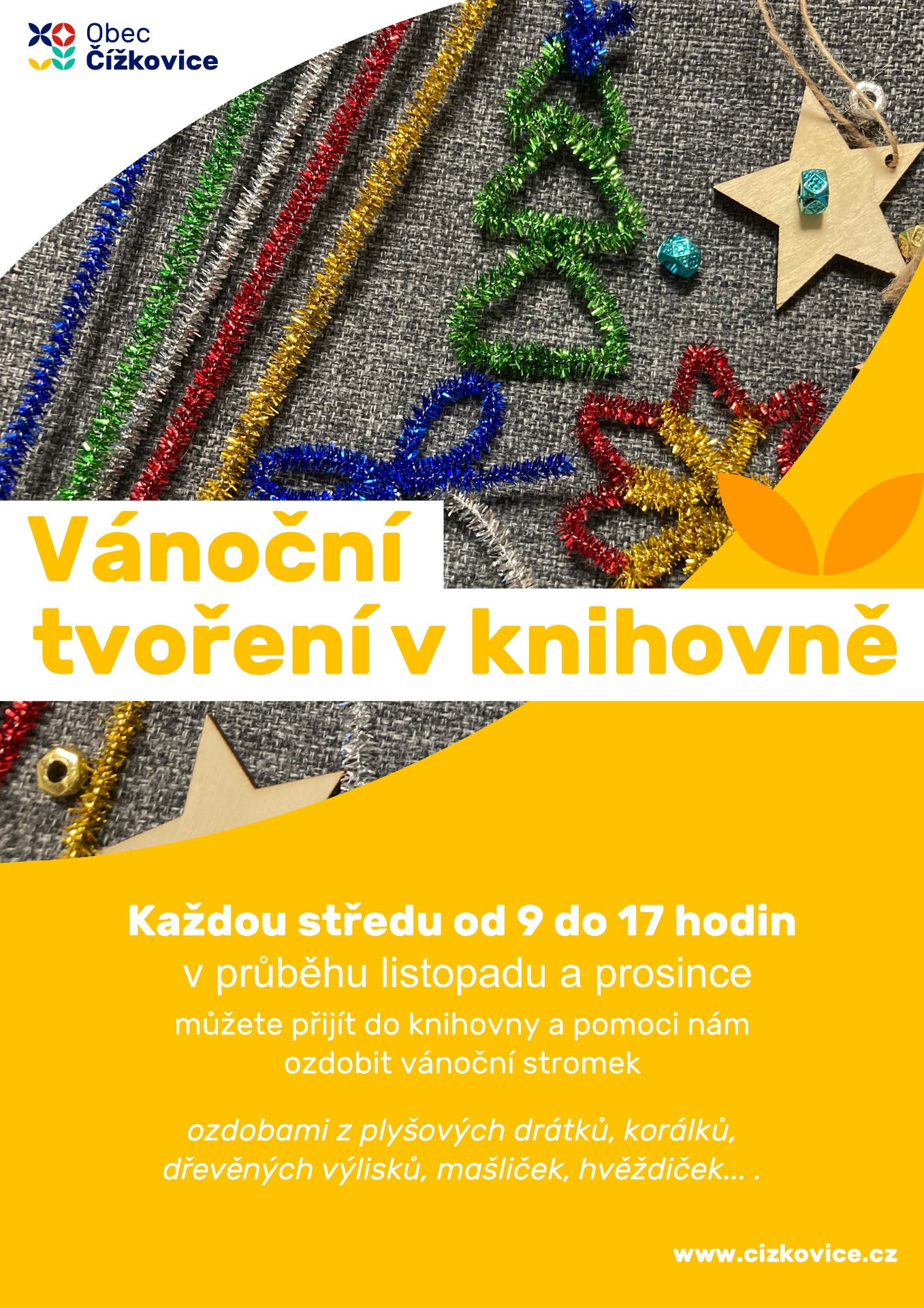 V průběhu listopadu a prosince mohou malí i velcí přijít pomoci ozdobit vánoční stromeček v knihovně. Vyzkoušejte si výrobu drátkových ozdob, přidejte korálky, rolničky... Fantazii se meze nekladou a stromeček hrdě ponese každý originál.
