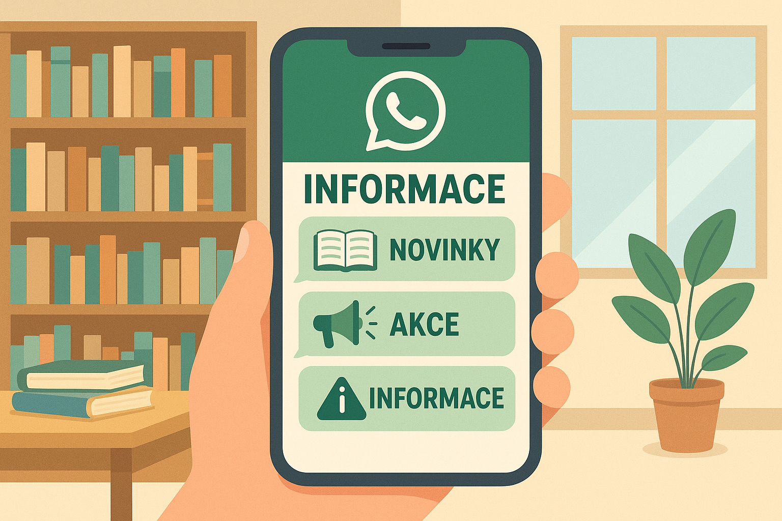 Chcete mít přehled o novinkách, připravovaných akcích nebo o nečekaných událostech v podobě zavřené knihovny? Nabízíme Vám připojení k watsappové skupině. V případě zájmu, zavolejte, nebo pošlete zprávu se jménem na